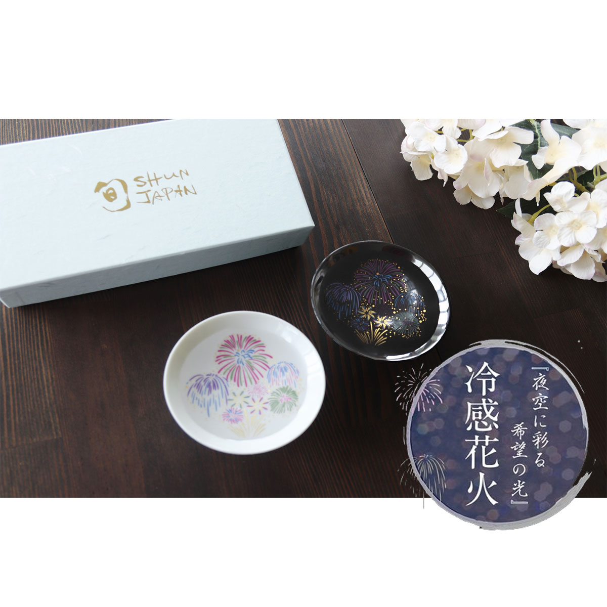 冷感花火平盃セット 温度で変化する 酒器 白黒セット 花火 純米吟醸 夏 盃 贈り物 プレゼント ギフト