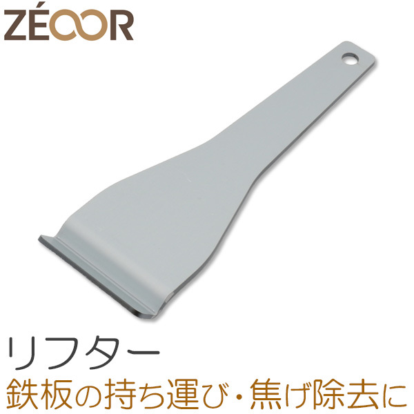 当店で取り扱うバーベキュー鉄板、グリルプレート専用につくられたリフターとなります。高温になった極厚鉄板を取り外したり、持ち運ぶのは軍手だけでは少々物足りません。このリフターを使うことで、鉄板の取り外しをサポート、持ち運びが楽に行えます。また、先端はスクレイパーとしてもお使い頂け、大きめな先端が鉄板に焦げ付いたカスや汚れを一気に落としてくれます。素材と形状にもこだわったリフターは、表面にはメッキを施し耐久性を高め、握る部分は持ちやすいよう手にフィットする形状で重量のある鉄板でも指にかかる食い込みを軽減してくれます。ZEOOR 極厚鉄板の取っ手やスリット形状に合わせて設計しておりますので、しっかりサポートしてくれます。安全のため、軍手や耐熱グローブと合わせてお使いください。