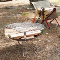 焚火台付属の焼き網を約50mm嵩上げする事が出来、太い薪や大きめの炭もそのまま継ぎ足す事が出来ます。