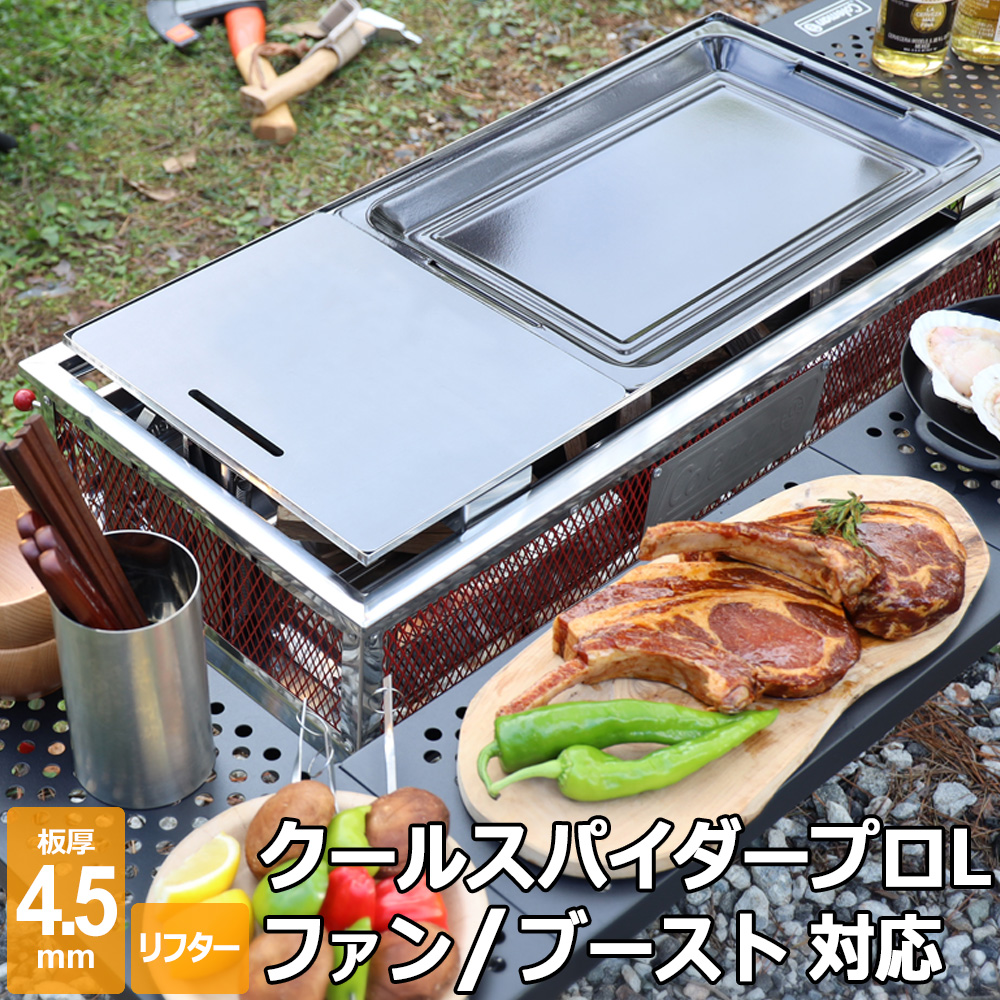 クールスパイダープロ本体の焼網高さを調整して極厚グリルプレートを使用する場合は、専用の『焼台固定用ステー』を推奨しております。焼台固定用ステーを取り付ける事で、極厚鉄板をセットしても焼台の高さが固定され安全にご利用頂けます。また、鉄板による荷重がレバーにかからないため、レバーが破損することはありません。