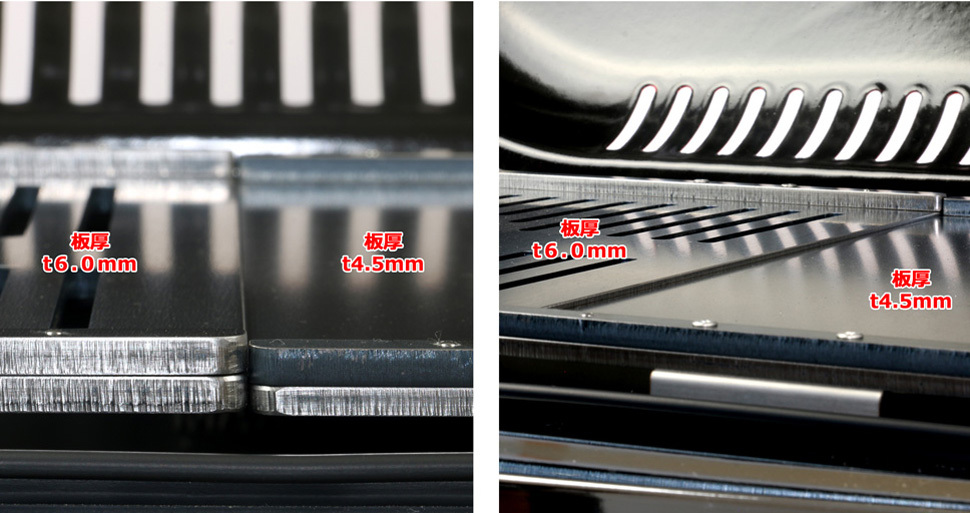 板厚t4.5mmとt6.0mmを組み合わせて使用した場合は、中央で段差が付き調理がしにくくなります。
