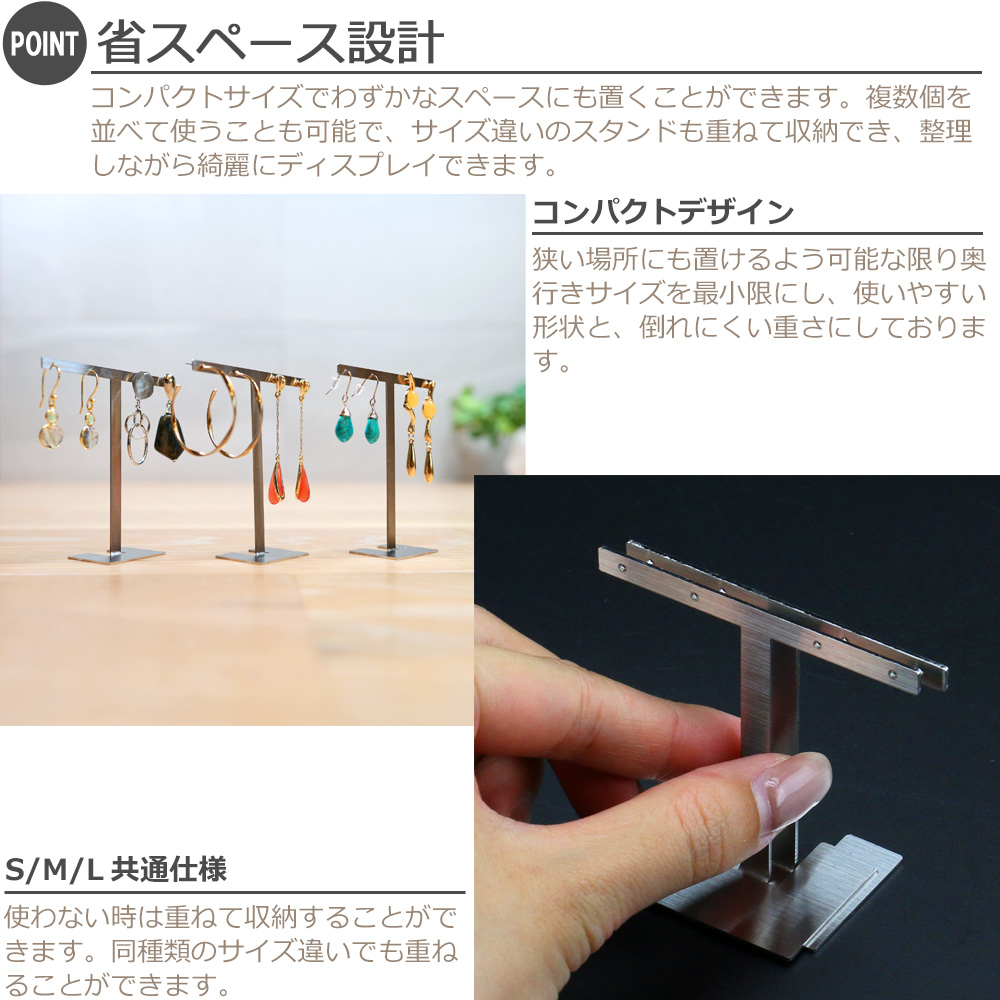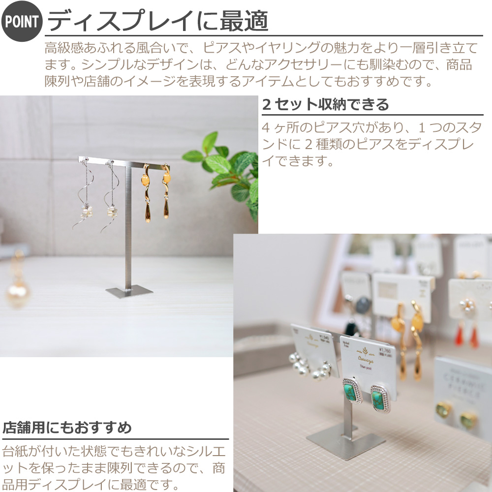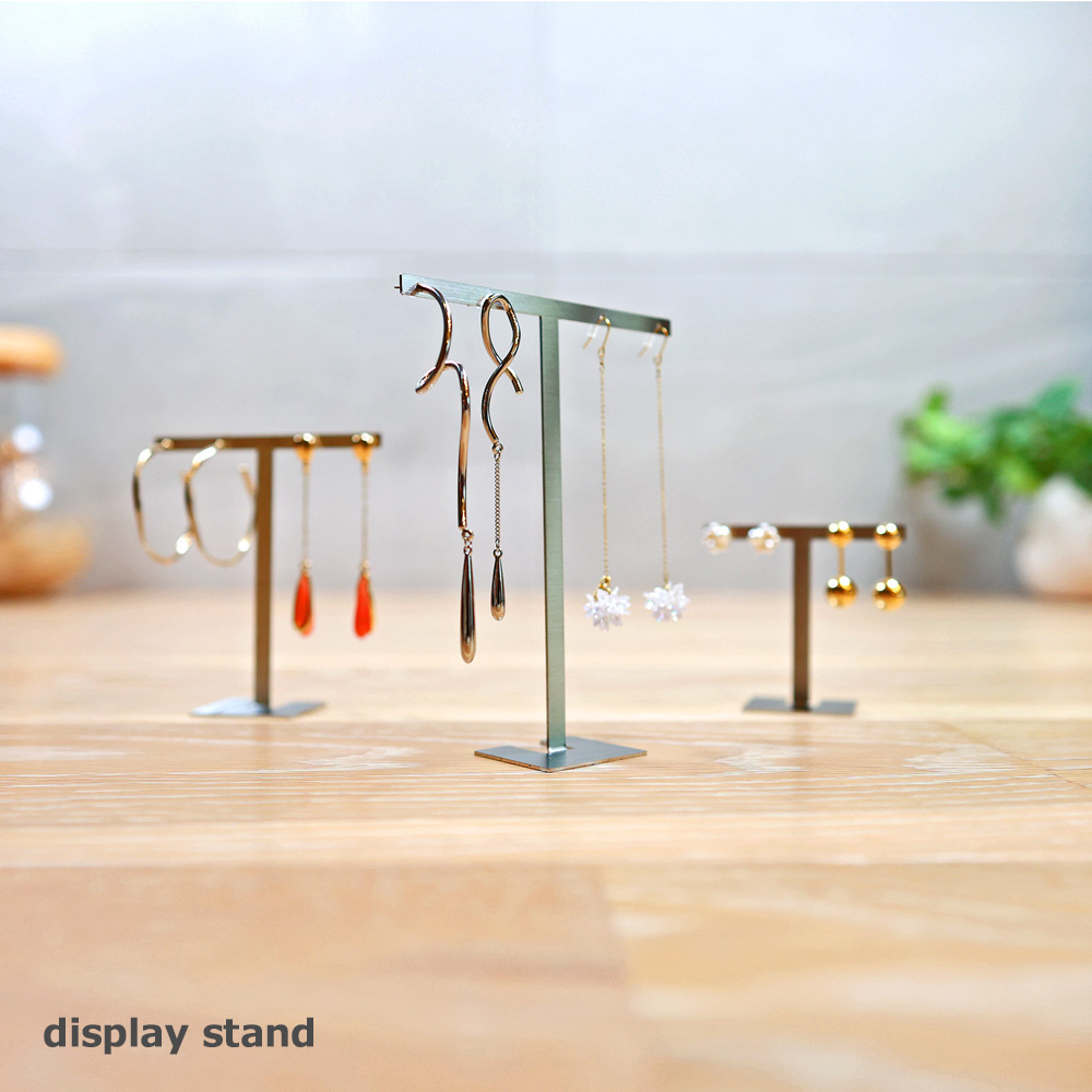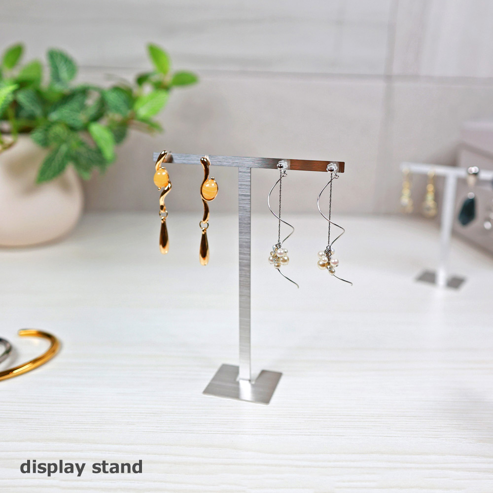 アクセサリースタンド T字 ジュエリー収納 イヤリング ピアススタンド ディスプレイ 展示 撮影用 ステンレス製 おしゃれ 雑貨 スクエア Sサイズ