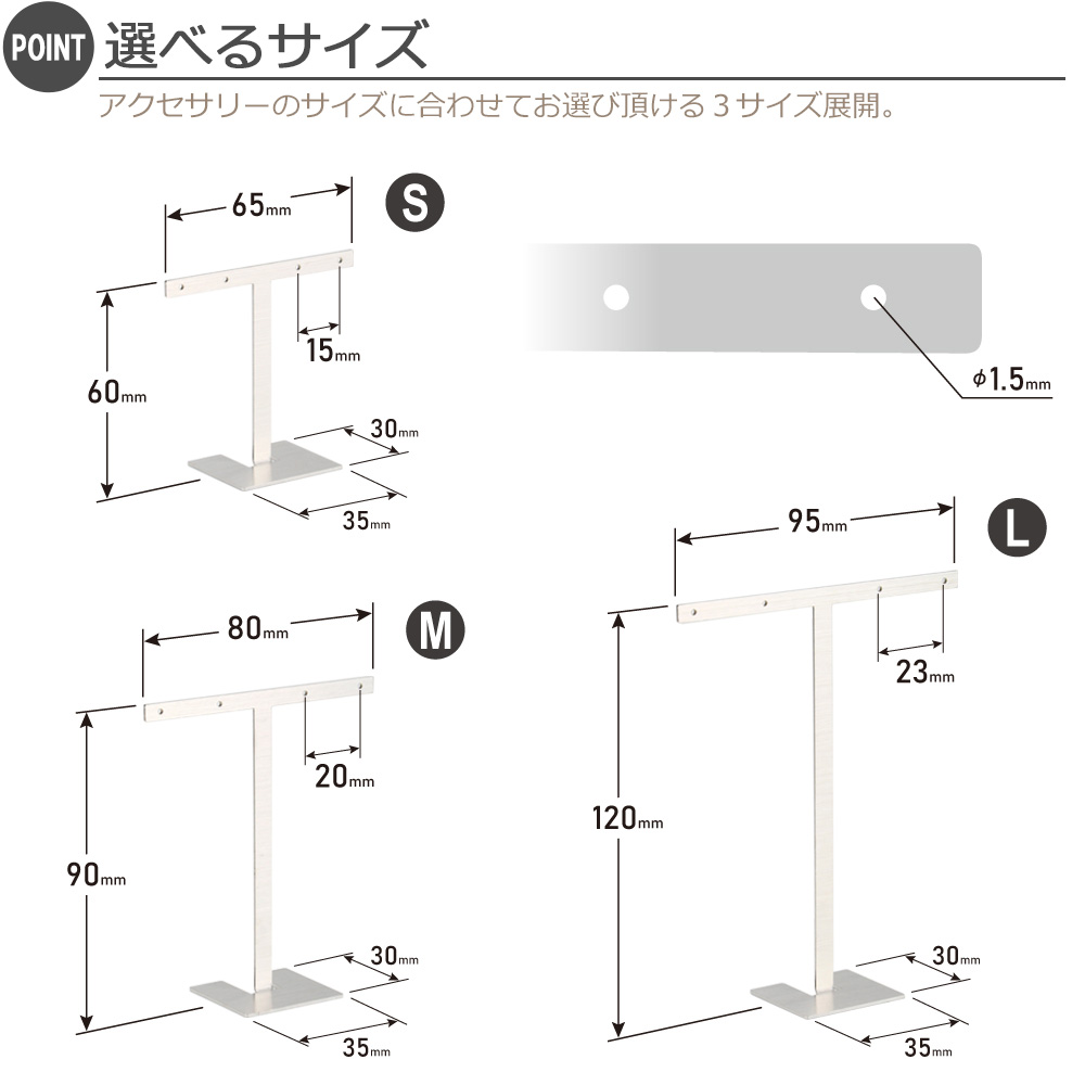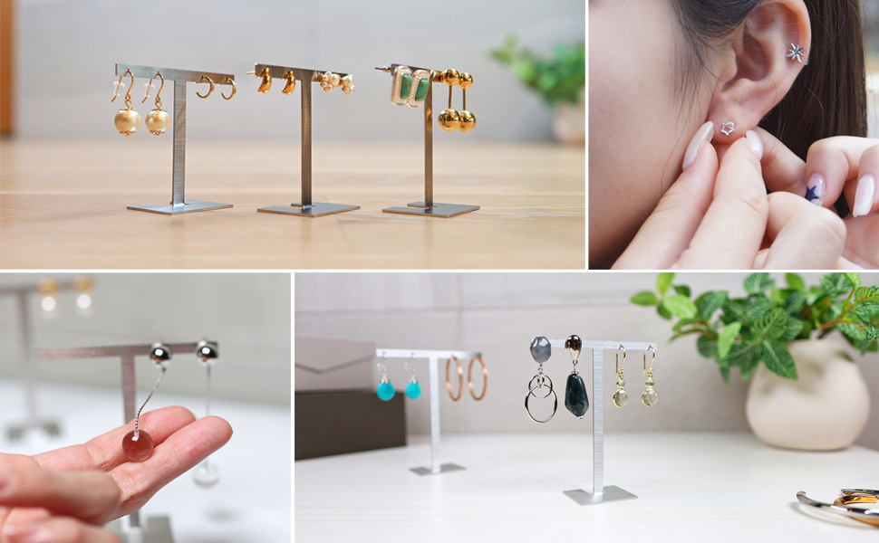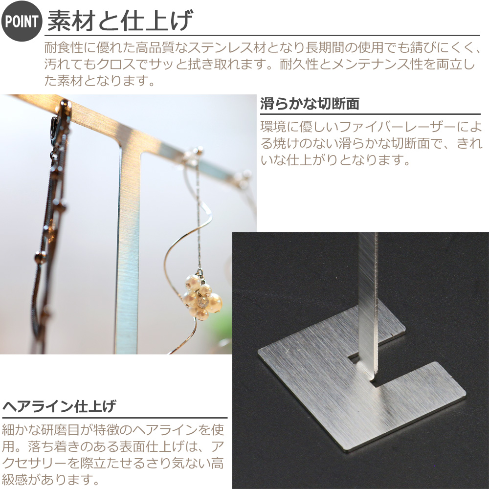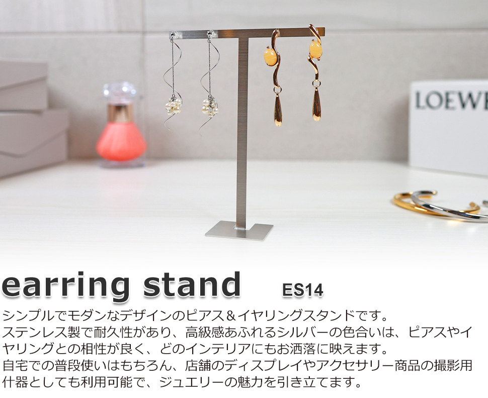 アクセサリースタンド T字 ジュエリー収納 イヤリング ピアススタンド ディスプレイ 展示 撮影用 ステンレス製 おしゃれ 雑貨 スクエア Sサイズ