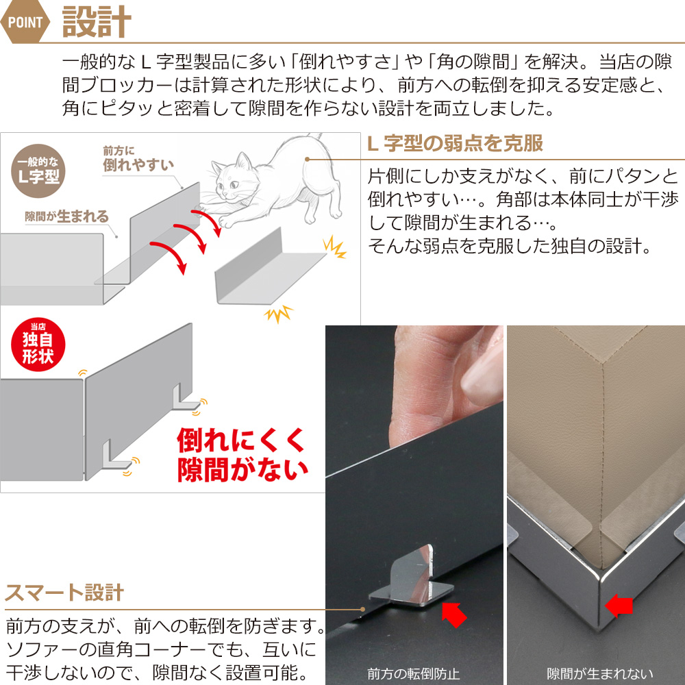 隙間ブロッカー L型 ロータイプ ステンレス 隙間ガード プレート ソファー下 ベッド下 犬 猫 おもちゃ 進入防止 隙間埋め 長さ40cm 60cm 各1本セット