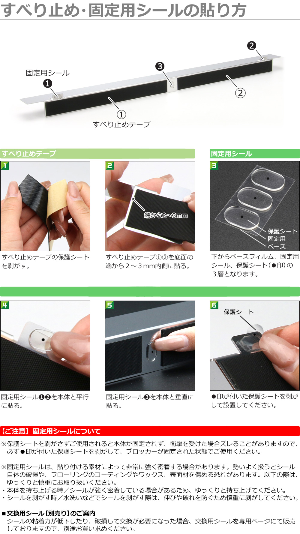 取扱説明書は同梱されません。本ページにてテープ・シール・エッジガード等の使い方をご確認ください。