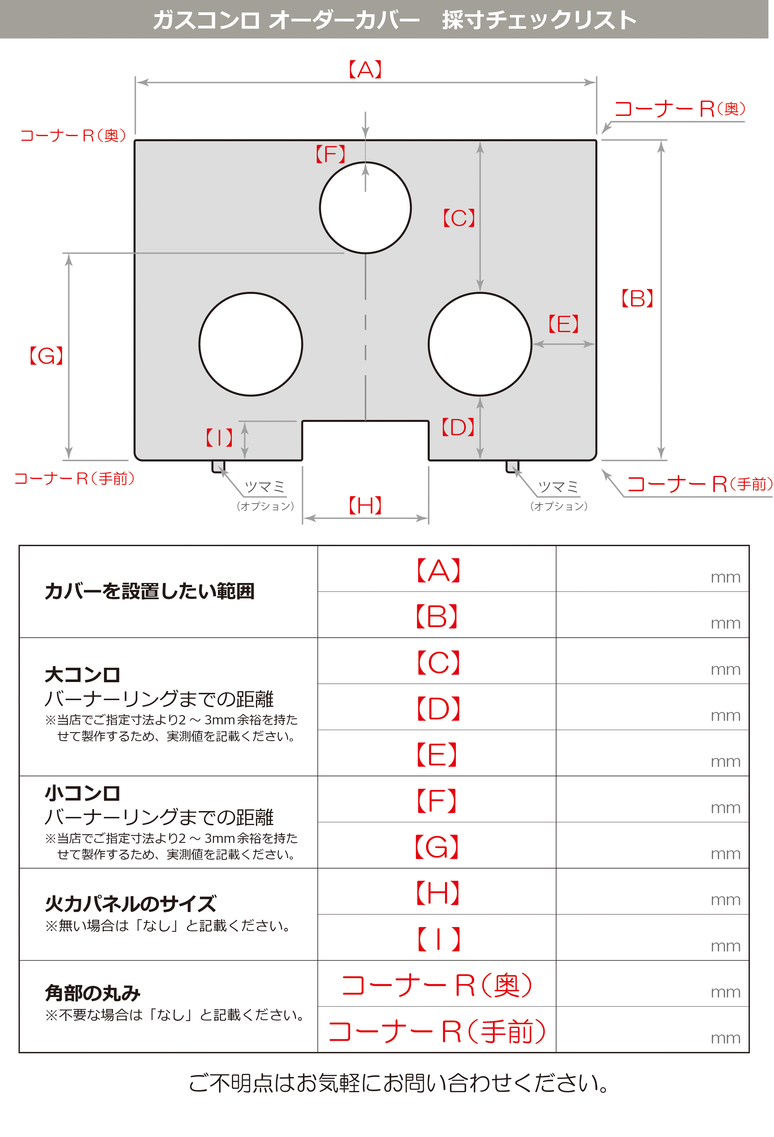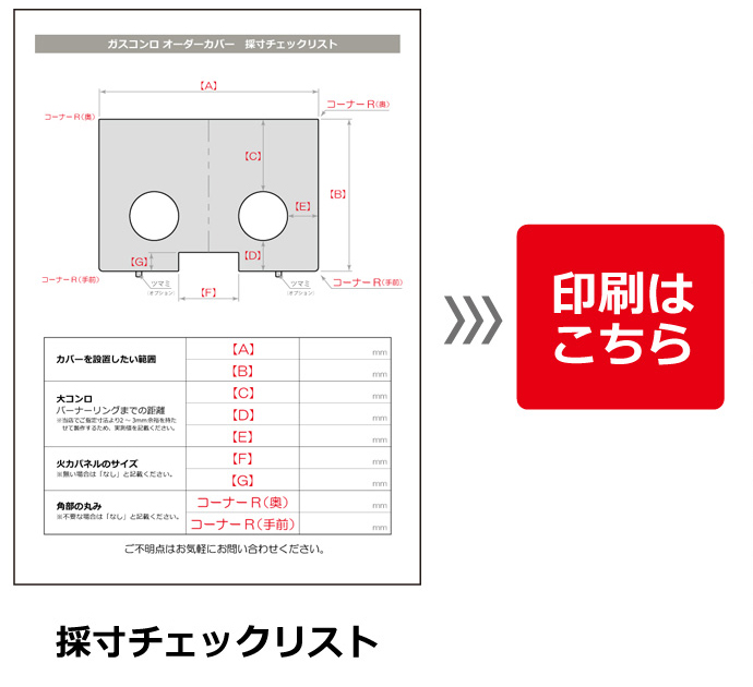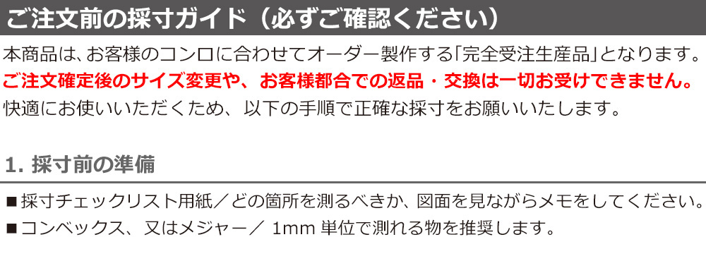 図面・採寸チェックリストを確認し、正確な採寸をお願いいたします。
