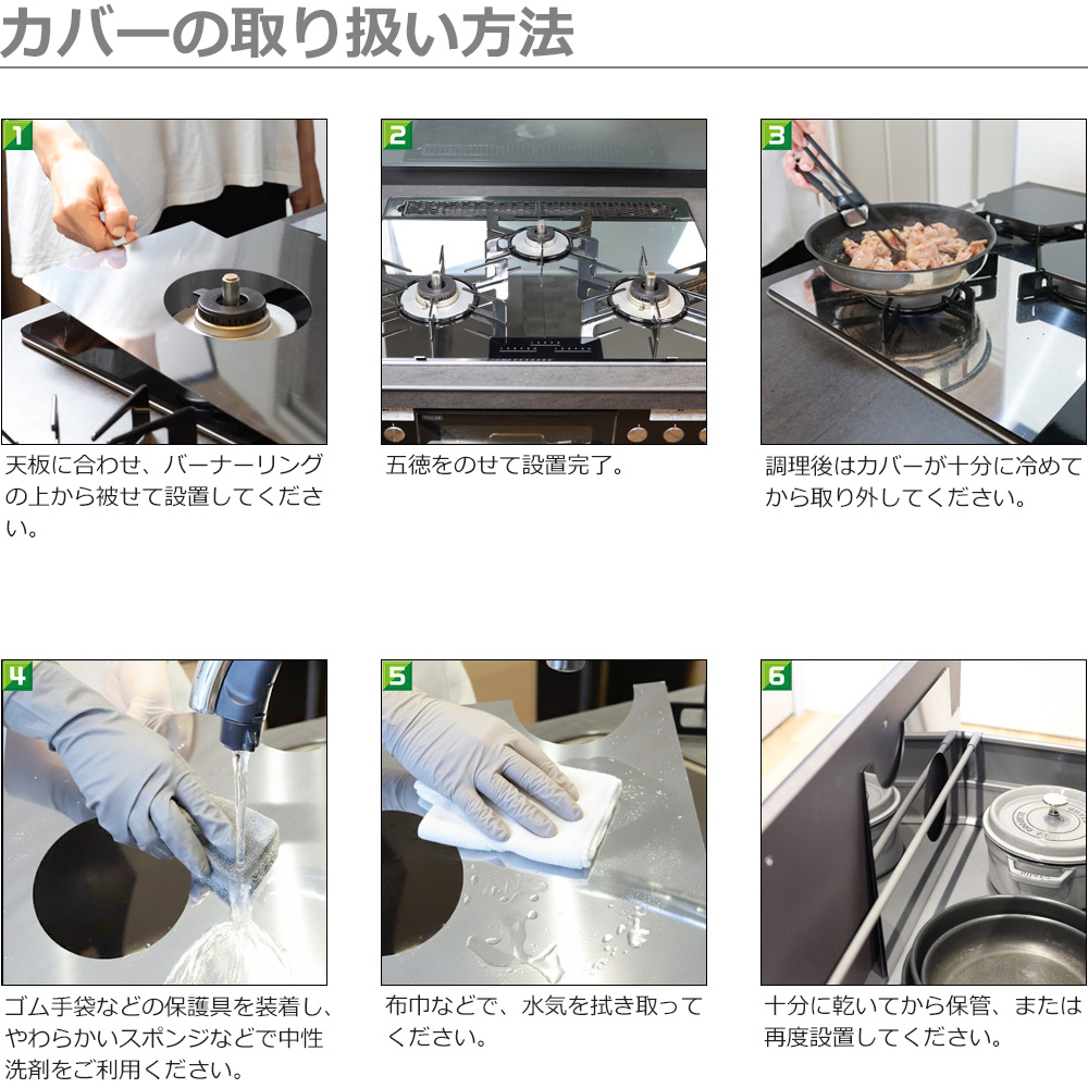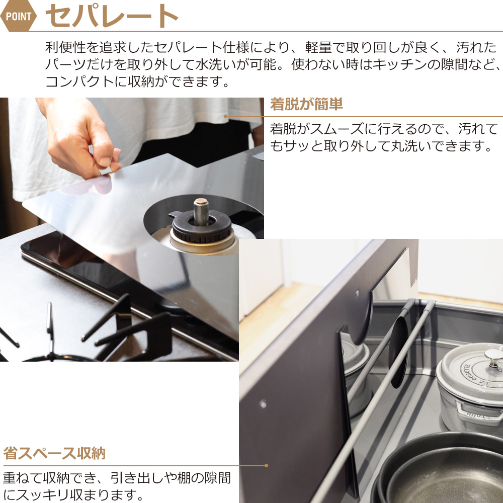コンロを使用の際、本商品が熱くなる恐れがございますので火傷に注意し、十分に冷めてから取り外してください。