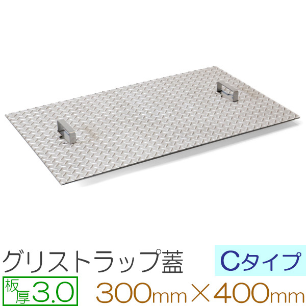 【グリストラップ蓋 ステンレス縞板 板厚3mm Cタイプ 300×400mm オーダーサイズ製作】