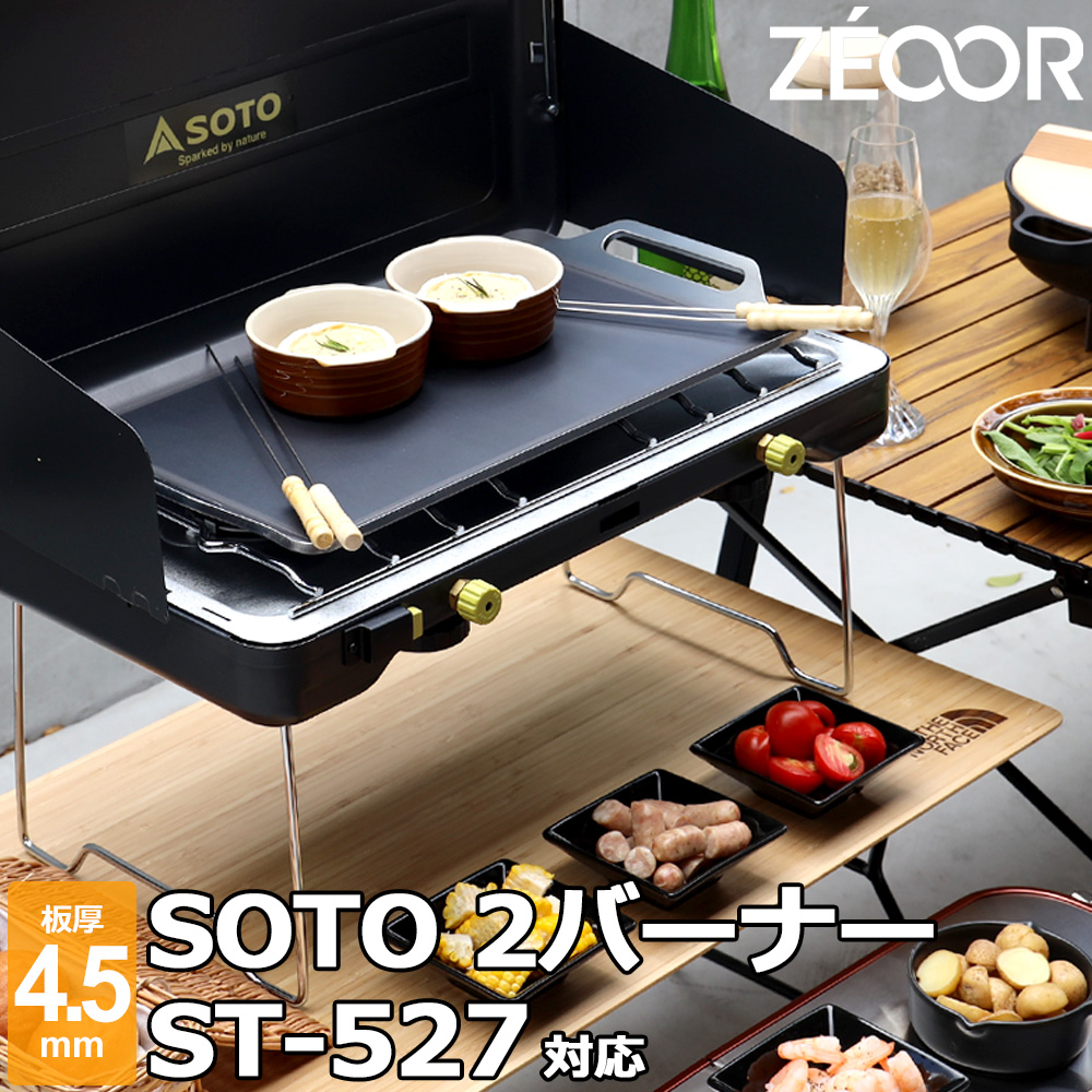 キャンプ、アウトドア、BBQや自宅でも使えるソト 2バーナー ST-527専用設計のZEOOR(ゼオール) 極厚バーベキュー鉄板です。