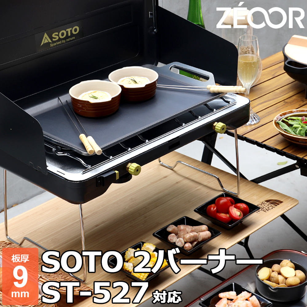 キャンプ、アウトドア、BBQや自宅でも使えるソト 2バーナー ST-527専用設計のZEOOR(ゼオール) 極厚バーベキュー鉄板です。