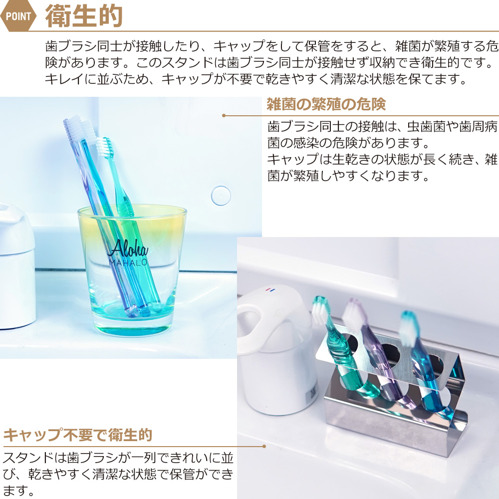 歯ブラシホルダー 置き型 歯ブラシスタンド 錆びに強い ステンレス 4本収納 滑り止め付 おしゃれ 歯ブラシ立て 衛生的 清潔 防カビ