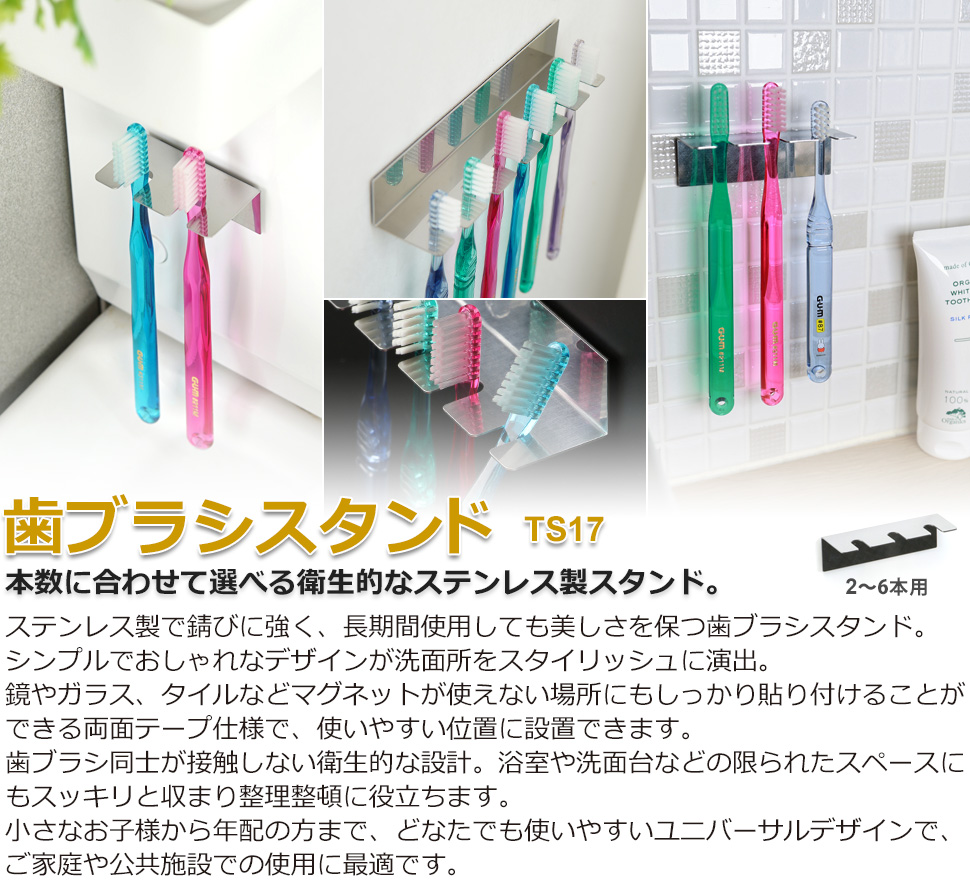 歯ブラシホルダー TS17は、洗面所をすっきりと整理するための理想的なアイテムです。