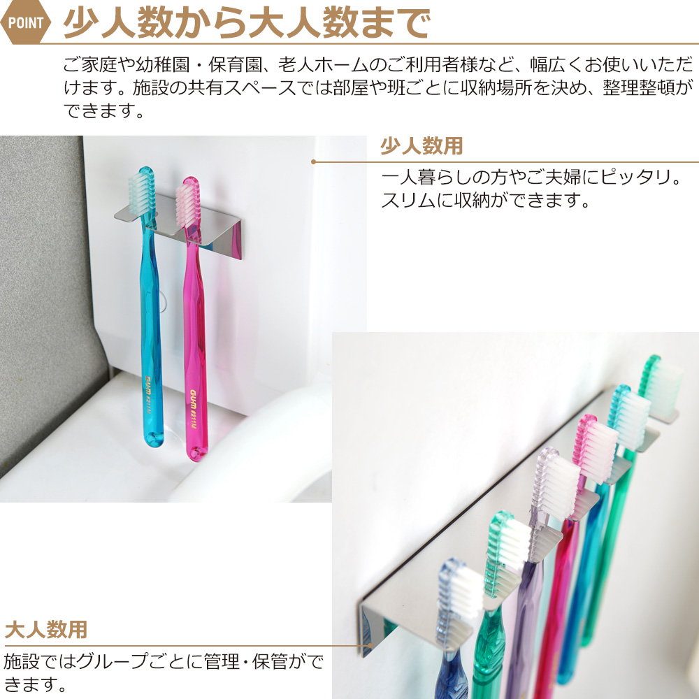歯ブラシホルダー 壁掛け 歯ブラシ収納 おしゃれ 歯ブラシスタンド ステンレス 清潔 衛生的 6本収納 テープ付き