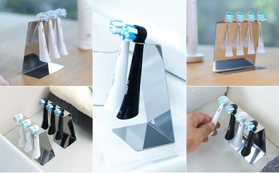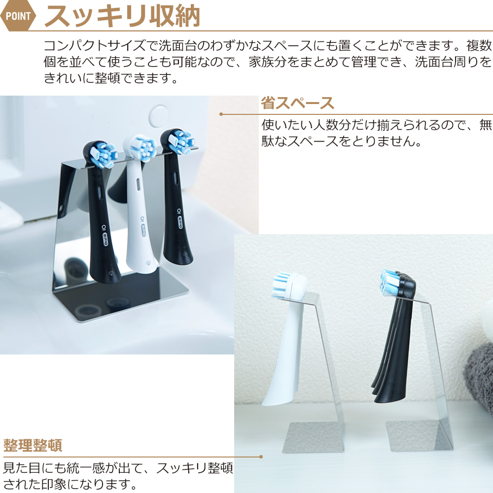 この歯ブラシスタンドは、電動歯ブラシの替えブラシを4本収納できるシンプルでおしゃれなデザインが特徴です。