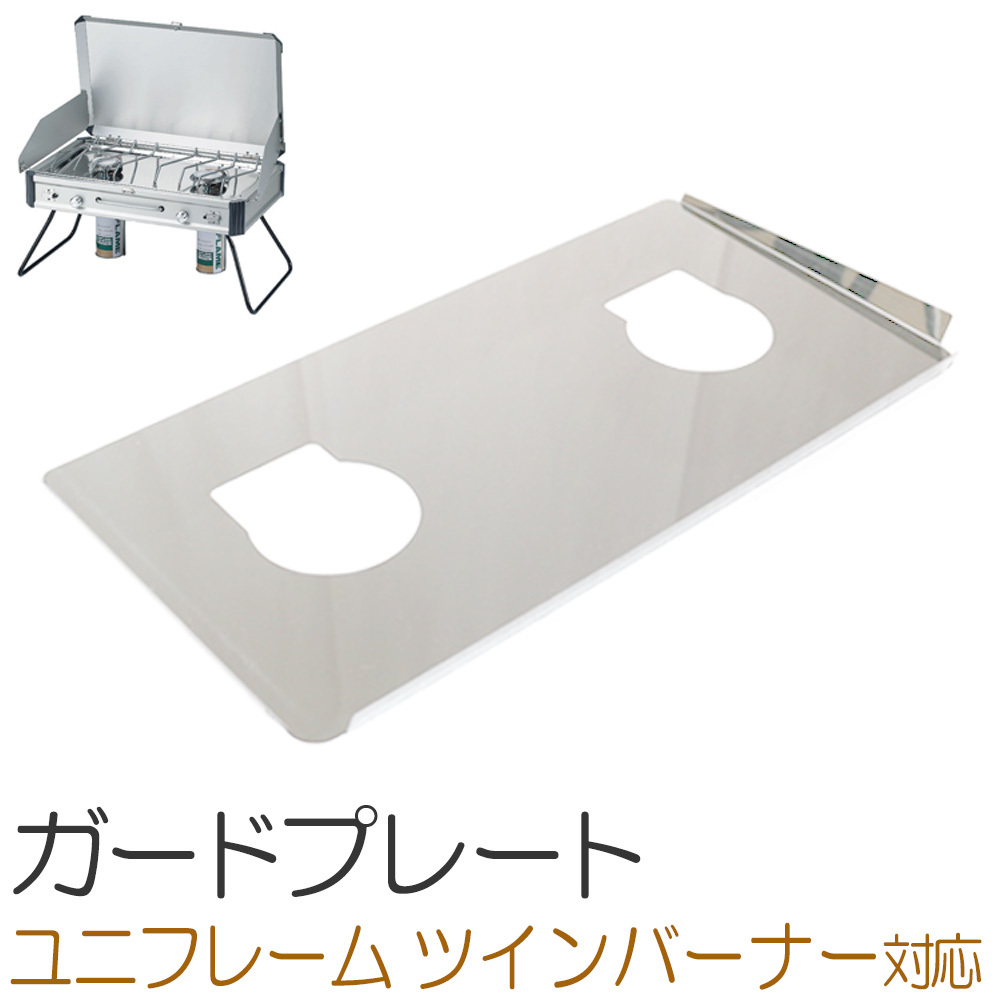 素材はステンレスを使用しており、遮熱性の高い素材となりますので、ツーバーナー本体、ガスボンベもガードプレートが熱を遮ってくれます。