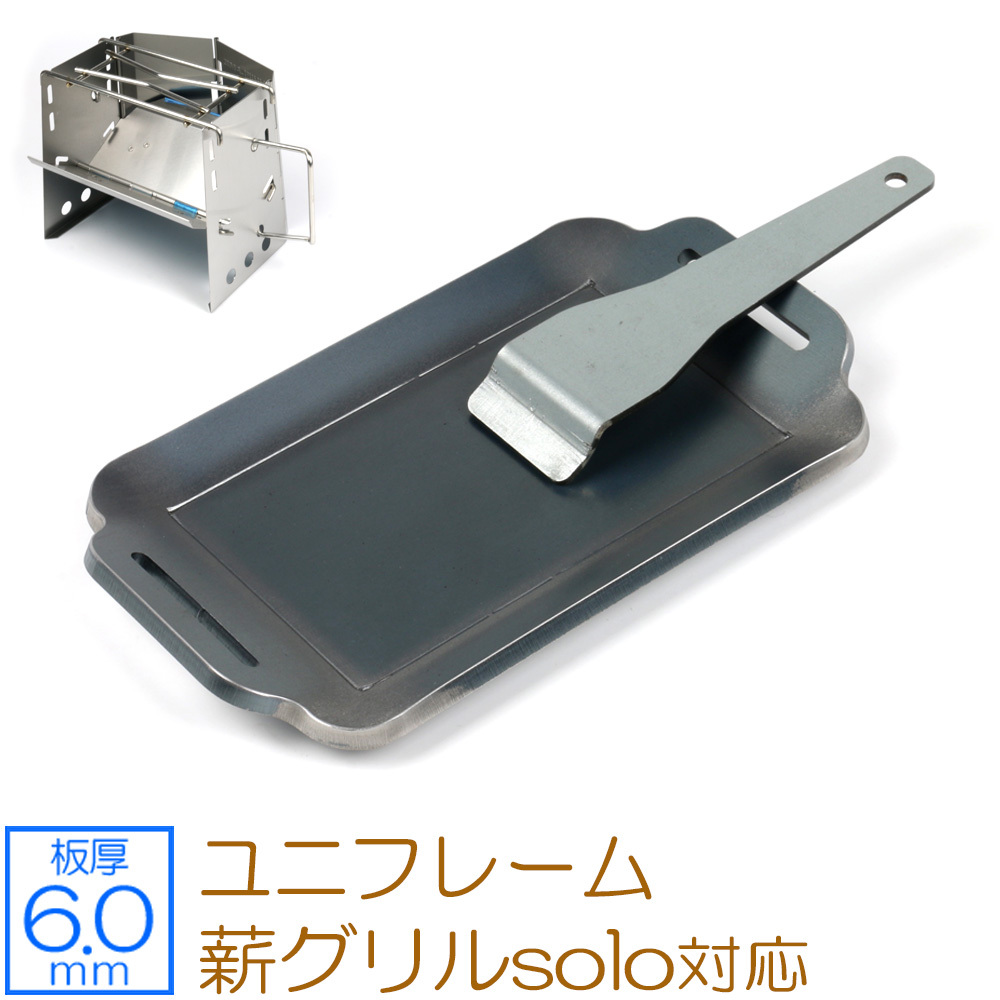UNIFLAME ユニフレーム 薪グリル ソロ 付属の五徳にピッタリサイズのソロキャンプ用極厚バーベキュー鉄板です。薪グリルの五徳位置はHighのみでご使用いただく仕様となります。