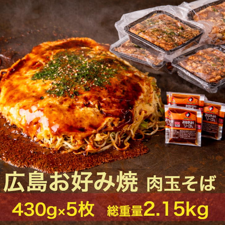 お好み焼き 冷凍 広島お好み焼 広島焼き 広島風 肉玉そば 簡易包装 5枚入 1枚 430g 大容量2.15kg 個包装 レンジ対応四角容器 オタフクソース小袋付き
