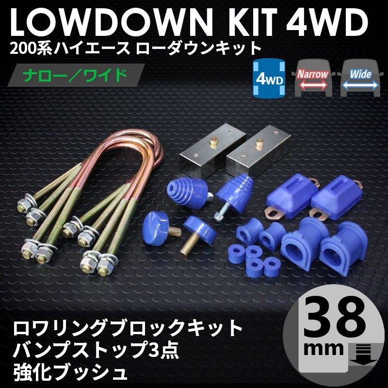ハイエース 200系 4WD ローダウンキット6(38mm(1.5インチ)バンプ3点 強化ブッシュ)ダウンブロック(1型 2型 3型 4型 5型 6型 7型)
