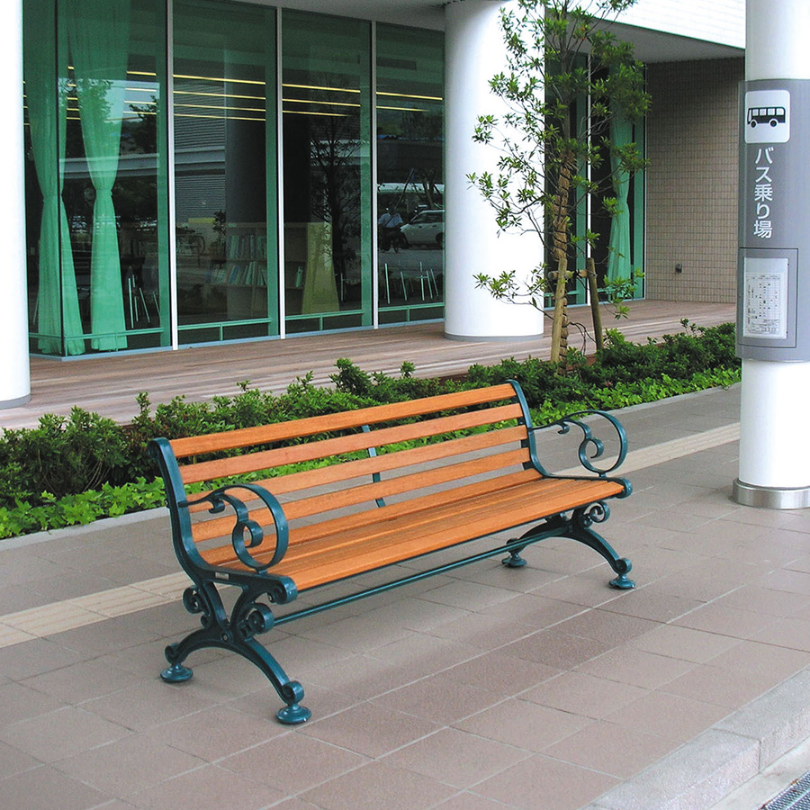 テラモト公式 ベンチ 屋外 イス 長椅子 背もたれ付き 肘付き 木製 雨に強い 庭 ガーデニング おしゃれ 業務用 1500