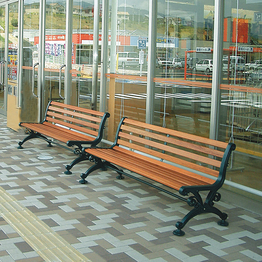 天然木を使用し、優しい雰囲気が魅力のベンチ。木材はネジ止めしていないので、雨水などにより腐食しにくい構造です。