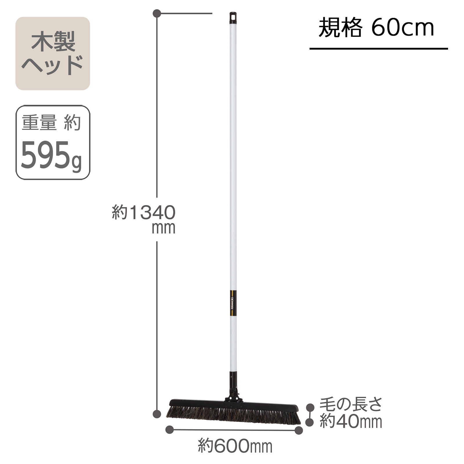材質 頭:天然木・スチールに電着塗装、毛:ポリエステル80%・馬毛20%、柄:直径22.2mmスチールパイプにポリエチレン接着被膜