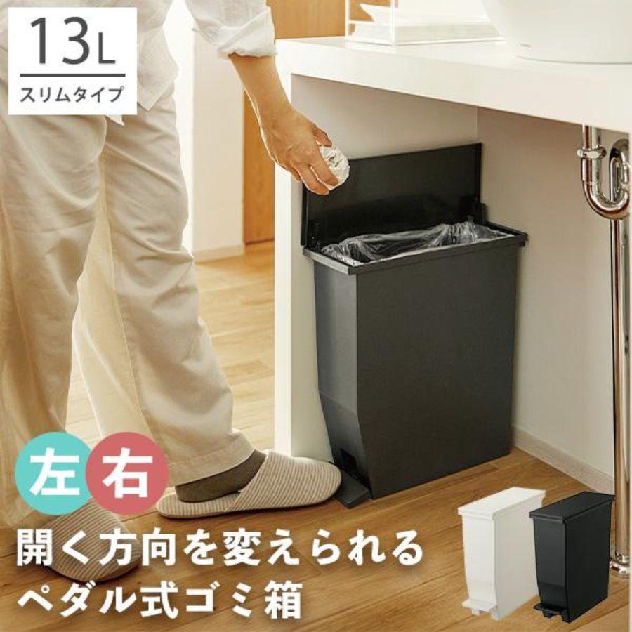 ふたの開き方を選べ、狭い隙間にも置けるスリムなペダル式ゴミ箱です。