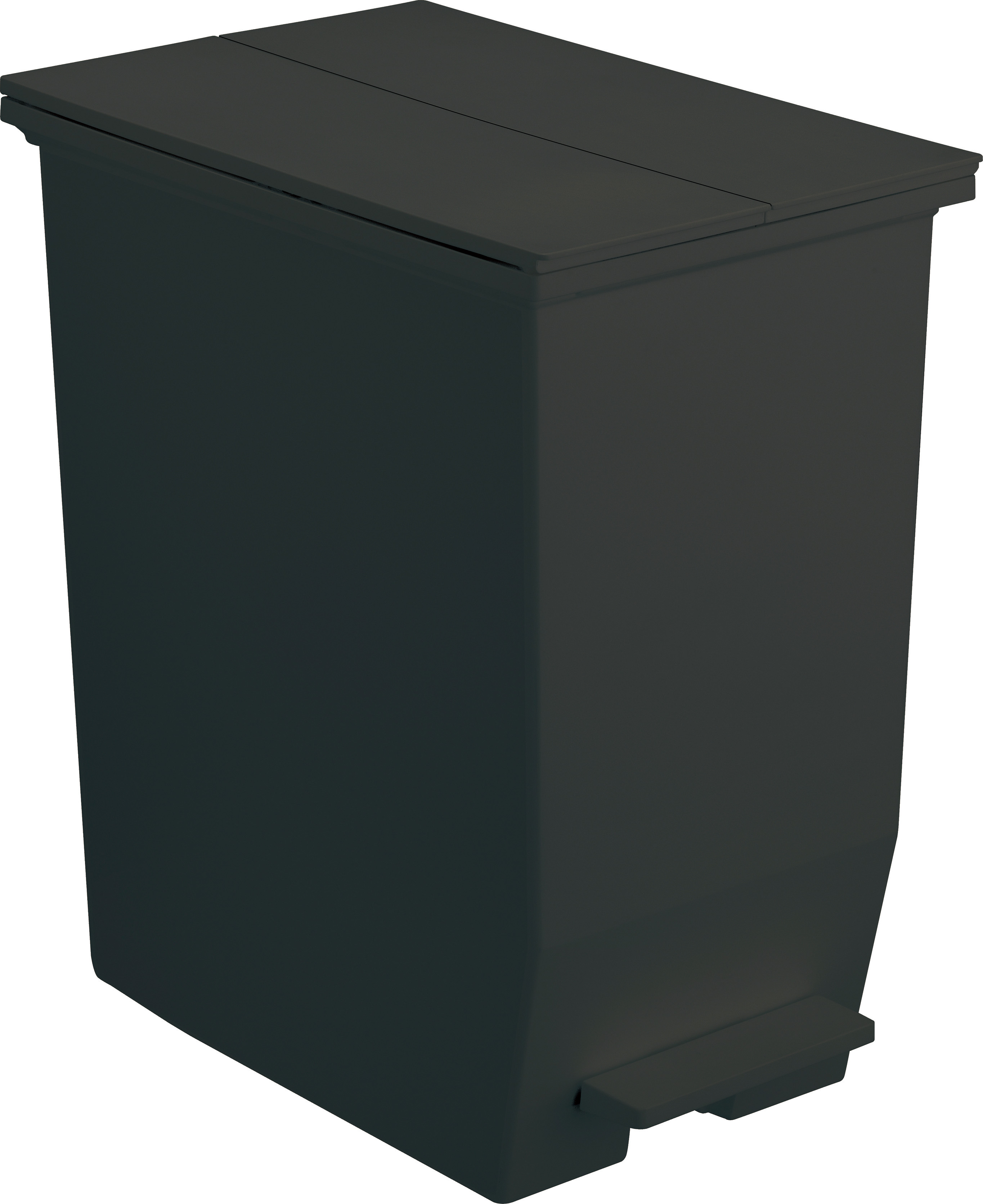 蓋が両サイドへ開くため高さを取らず、コンパクトに納まるペダル式ゴミ箱です。