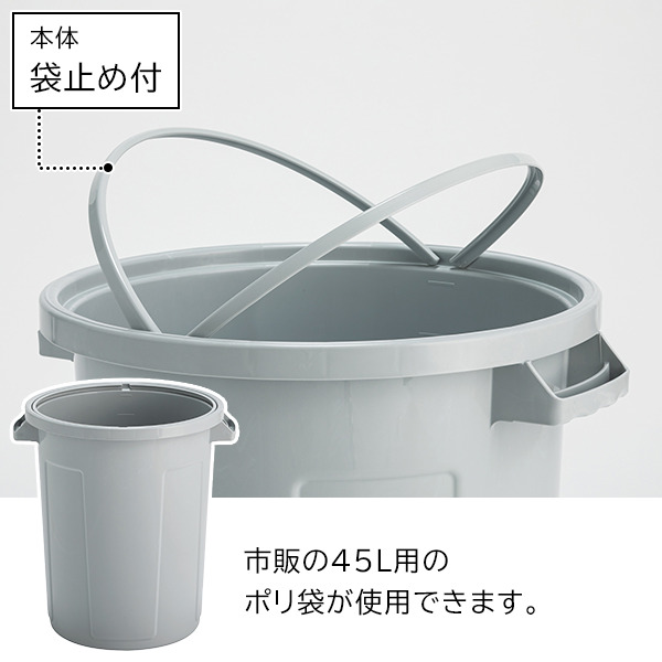 テラモト公式 ゴミ箱 おしゃれ 45L 45リットル ごみ箱 臭わない パッキン おむつ 業務用 本体 丸型 灰色