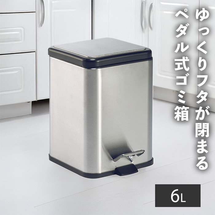 テラモト公式 ゴミ箱 ペダル式 四角 おしゃれ 蓋 6L 6リットル ごみ箱 業務用 ダストボックス フタ付き ステンレス