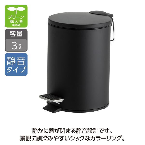 テラモト公式 ゴミ箱 ペダル式 静音 おしゃれ 蓋 3L 3リットル ごみ箱 業務用 ダストボックス フタ付き 黒