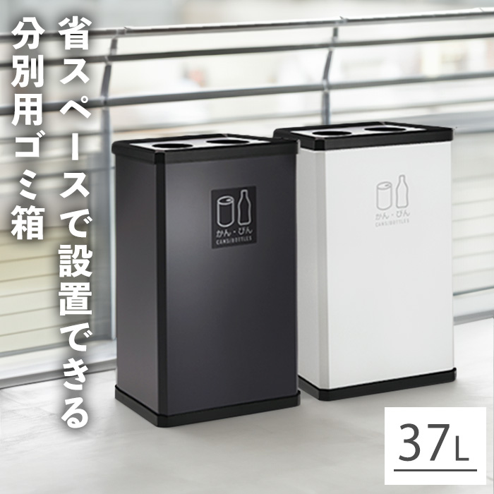 省スペースで分別回収が可能なスチール製ゴミ箱。