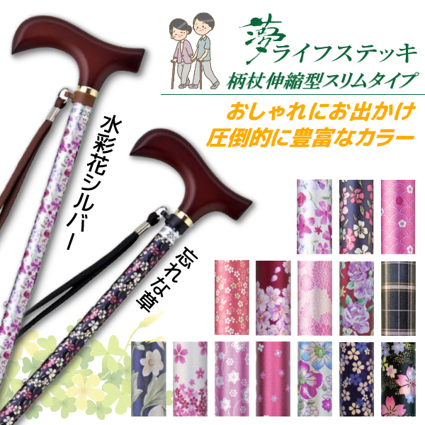 ウェルファン 夢ライフステッキ 柄杖伸縮型スリムタイプ おでかけ 9714