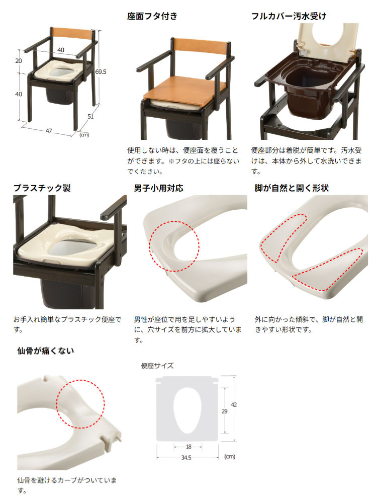 ( 介助 木製 コンパクト 小さめ ポータブルトイレ 軽量 かるい 座面フタ付き 汚水受け 移動式トイレ 介護トイレ )
