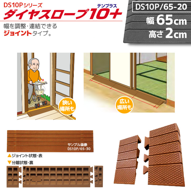 段差解消リフォーム 室内用 置くだけ ダイヤスロープ10+ DS10P/65-20 幅65cm/段差2.0cm/奥行10.6cm 勾配10度 シンエイテクノ