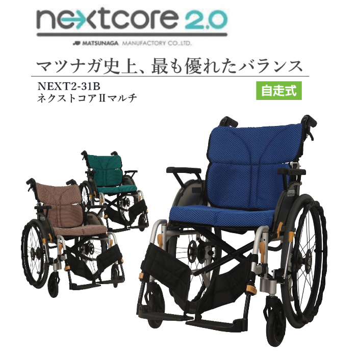 松永製作所 自走式車いす(介助兼用) ネクストコア2マルチ NEXT2-31B ノーパンクタイヤ(ハイブリッドタイヤ) NEXT CORE2 法人様送料無料
