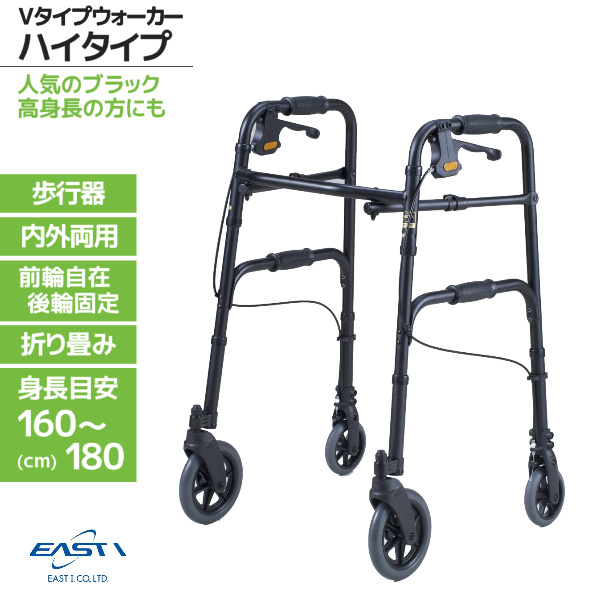イーストアイ セーフティーアーム Vタイプウォーカー SAVH ハイタイプ ブラック 歩行車 室内・屋外両用 使用身長目安160〜180cm