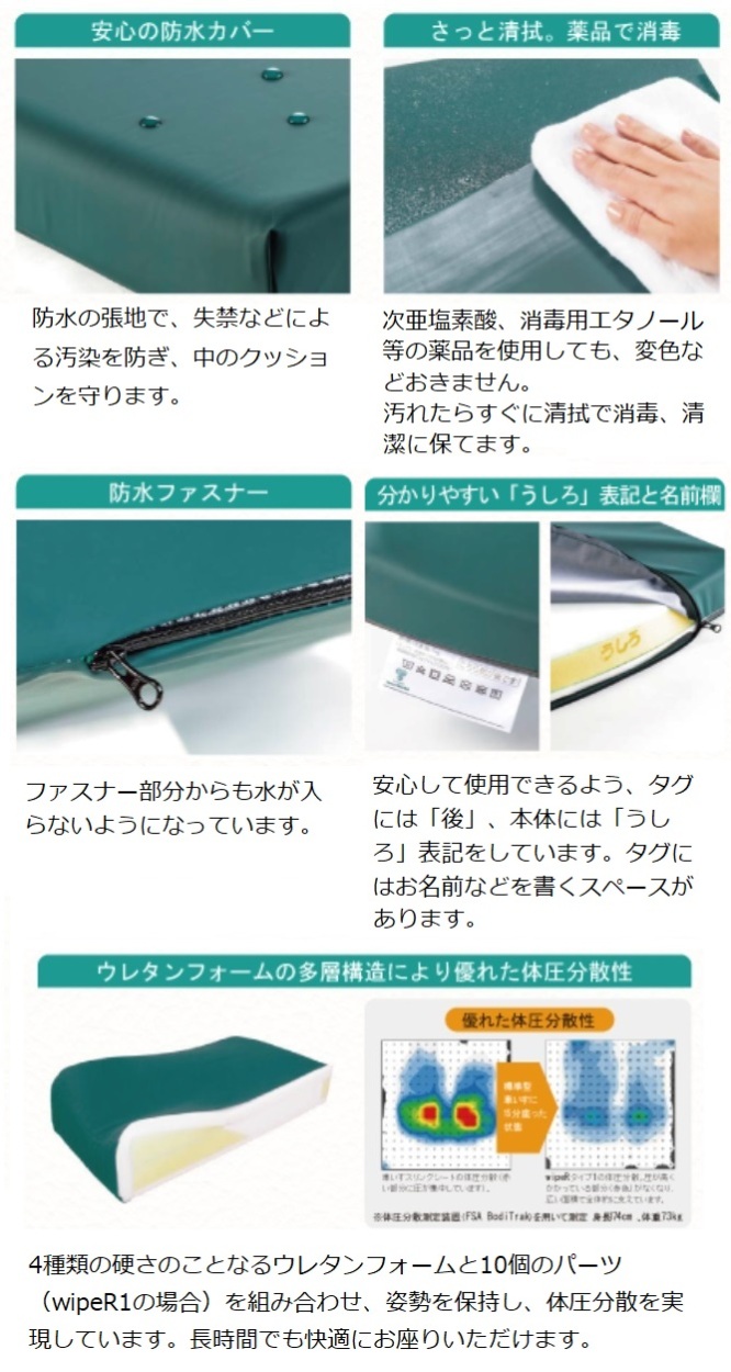 タカノ 車いす用クッション wipeR タイプ1 TC-REW1 姿勢安定タイプ 防水 タカノクッション