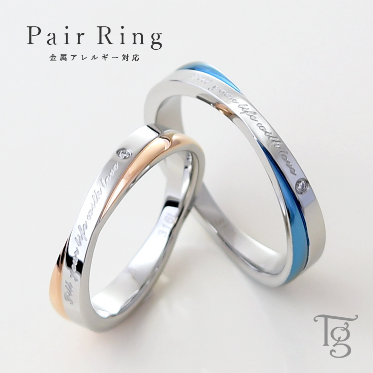 [リング内側の刻印について]■ 商品説明二人の出会いを表したツートンカラーのクロスラインデザインペアリング。Fill your life with love(愛があふれる日々を)のメッセージに添えられたキュービックジルコニアが輝きます。リング内側に名前や記念日などが刻印可能です。