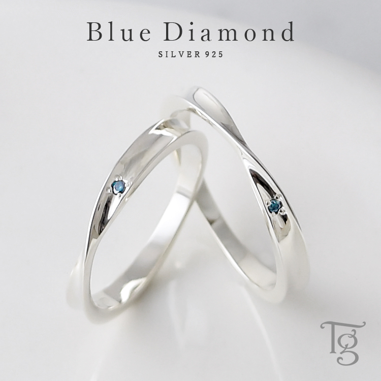 [リング内側の刻印について]■ 商品説明シルバーのなめらかなひねり曲線に、ブルーダイヤモンドが鮮やかに映えるペアリング。ブルーダイヤモンドには「永遠の幸せ」や「絆を深める」っといった意味があり、サムシングブルーのジュエリーとして人気があります。幸せな結婚のお守りとしてもオススメです!