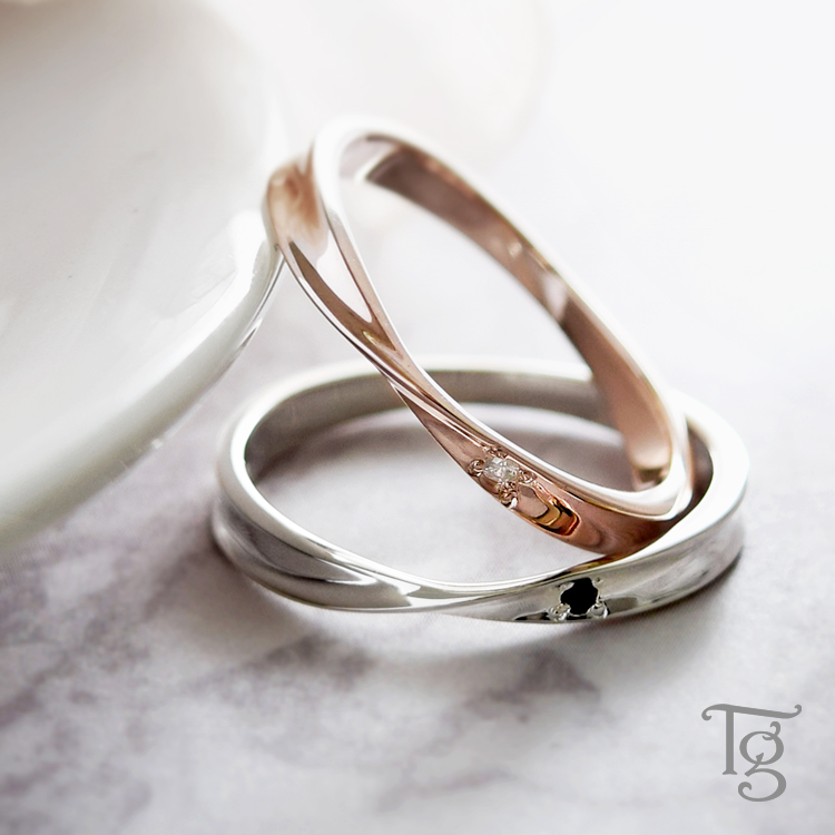 ※英訳、ローマ字変換等のサービスはしておりません。■ 商品説明細身のひねりデザインが指をキレイに見せてくれるメビウスペアリング。