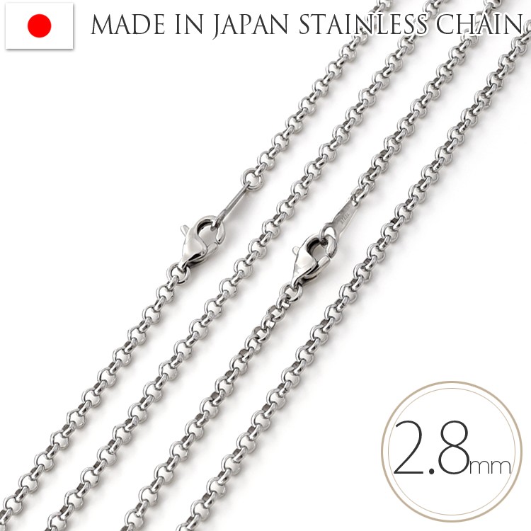 ネックレス チェーン サージカルステンレス製 太幅2.8mm ハーフラウンドチェーン 金属アレルギー対応 316L 日本製 40cm 45cm 50cm 60cm 70cm 80cm レディース メ