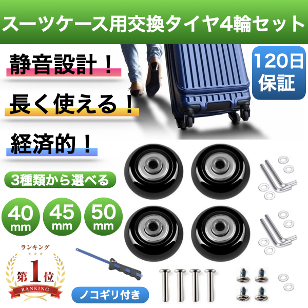 スーツケース タイヤ 交換 キット セット キャスター交換 車輪 修理 キャリーケース のこぎり付き ノコギリ 4個 40mm 45mm 50mm 54mm