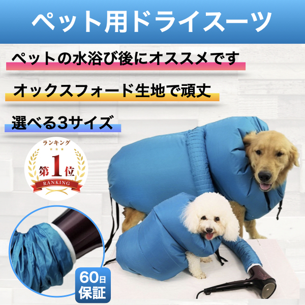 ペット用乾燥袋を使うことで入浴後や水浴び後のペットの毛をすぐに乾かすことができます。