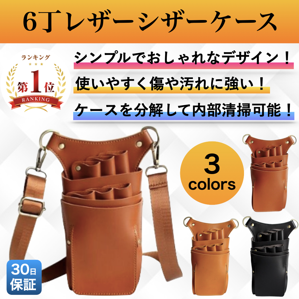 シザーケース 美容師 トリマー 花屋 軽い 6丁 レザー おしゃれ ベルト 持ち運び シザーバッグ シザーポーチ オシャレ