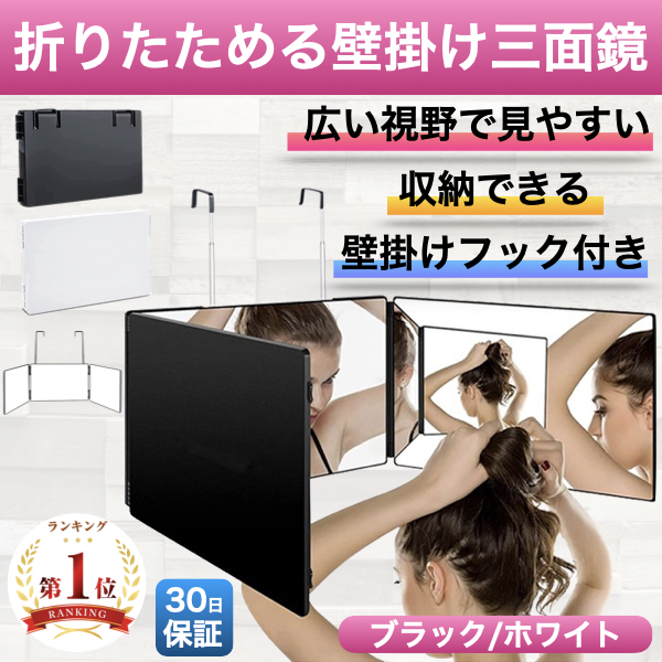 三面鏡 壁掛け 洗面 化粧鏡 収納 姿見 壁かけ 大きい 折りたたみ式 賃貸 セルフカット 女優ミラー 調節可
