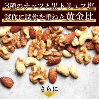 世界で最も高級で芳醇な香りの食用キノコ『イタリア産の高級黒トリュフ(別名:黒のダイヤモンド)』と、美食の国で愛好されている『フランス・ゲランド産の天然天日塩(粗塩)』を絶妙な配合で味付けした、3種の黒トリュフ塩ミックスナッツ。