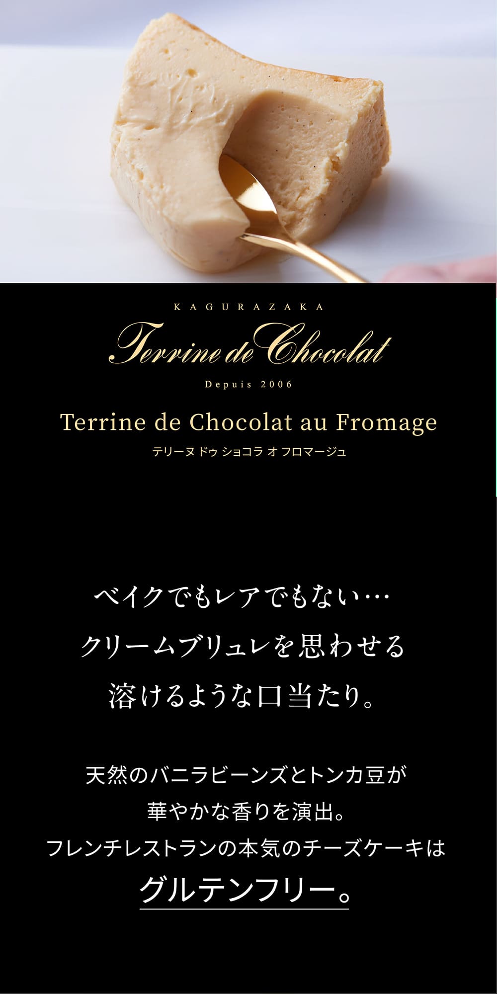 クレームブリュレを思わせる濃厚な味わいは、老若男女に愛される、濃厚な味わいのチーズケーキ。