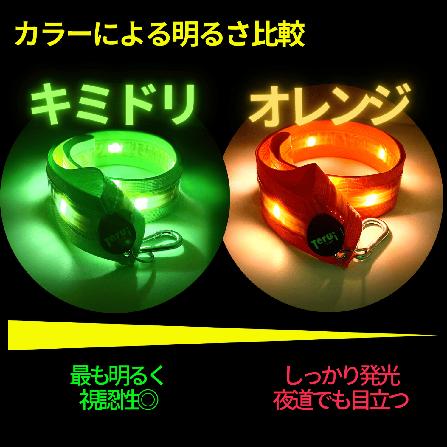 視認性◎のキミドリ、夜道で映えるオレンジ、