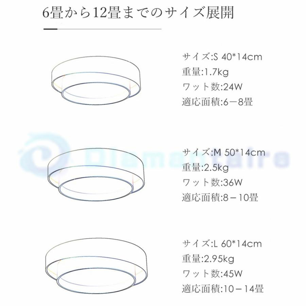 60*60*14cm / パワー:45W / 適用空間:10~12畳/LM:3600