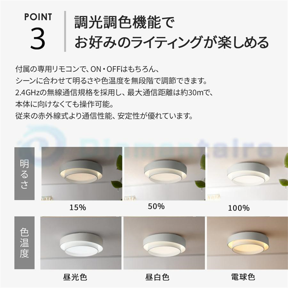 調光調色:リモコン付き・スマホ制御可能